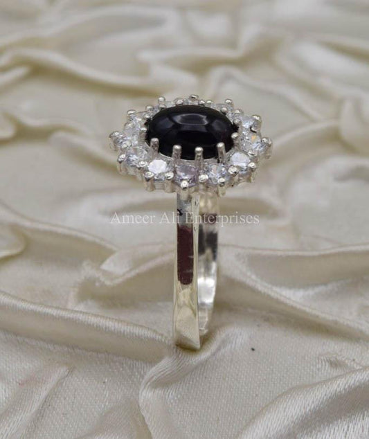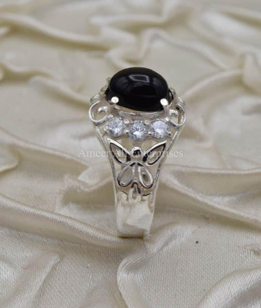 AAE 1120 Chandi Ring 925, Stone: Black Aqeeq