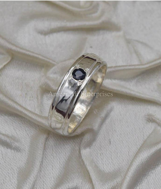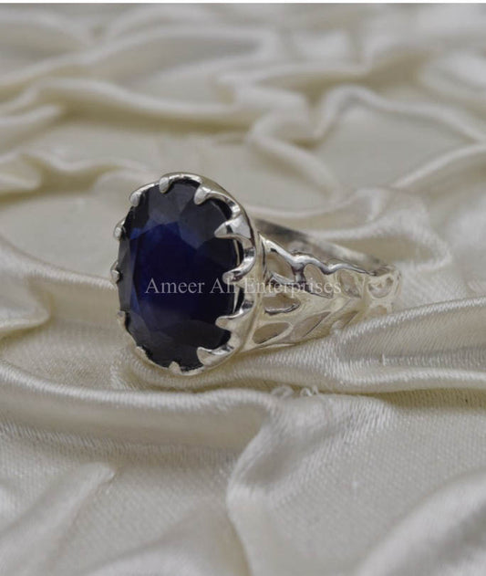 AAE 1433 Chandi Ring 925, Stone: Blue Sapphire (Neelam)