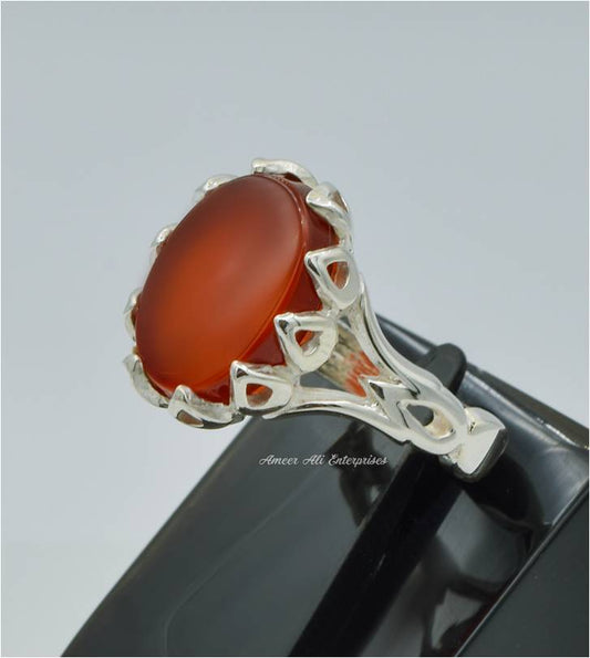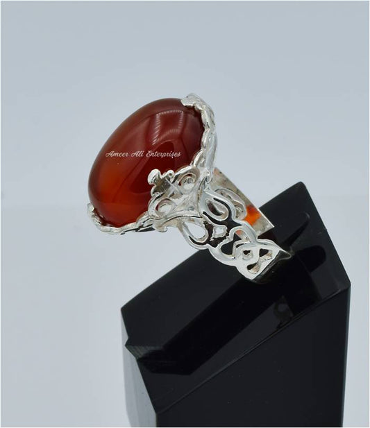 AAE 1214 Chandi Ring 925, Stone: Red Aqeeq