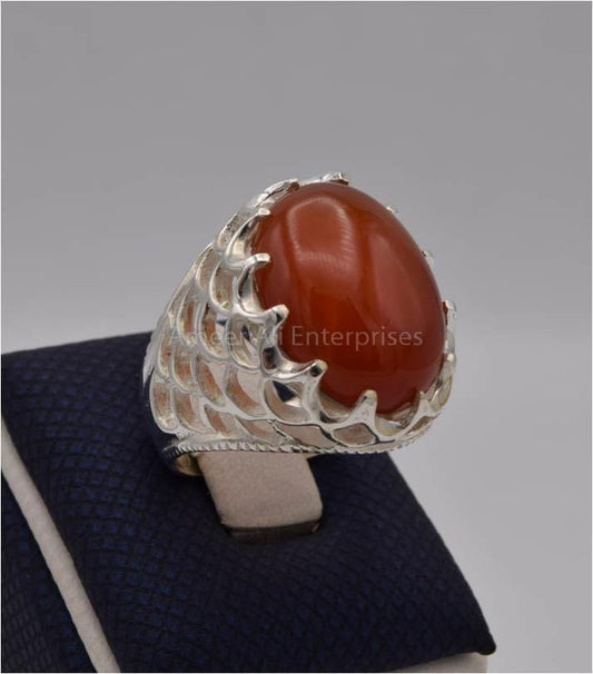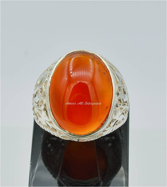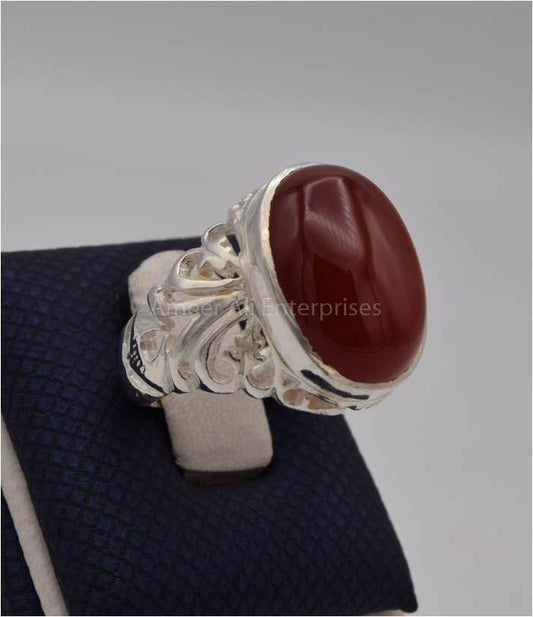 AAE 9600 Chandi Ring 925, Stone: Red Aqeeq