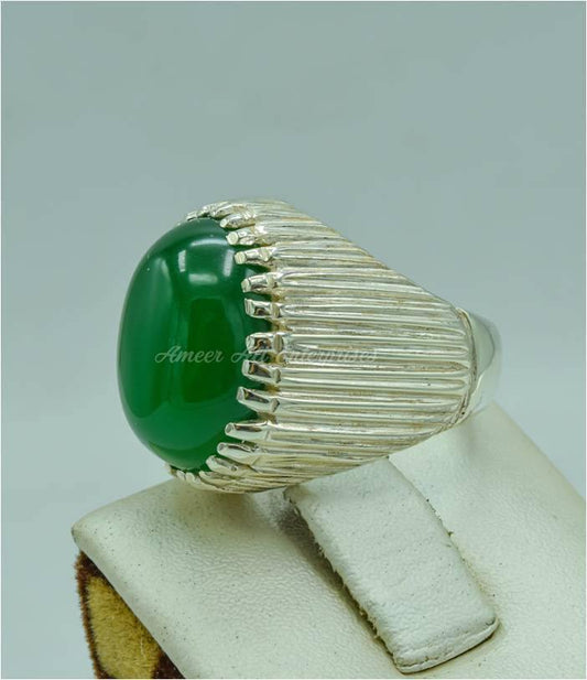 AAE 5707 Chandi Ring 925, Stone: Green Aqeeq
