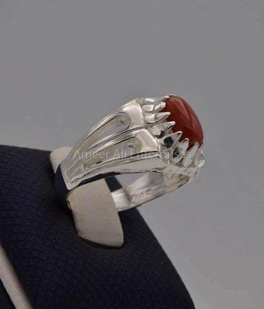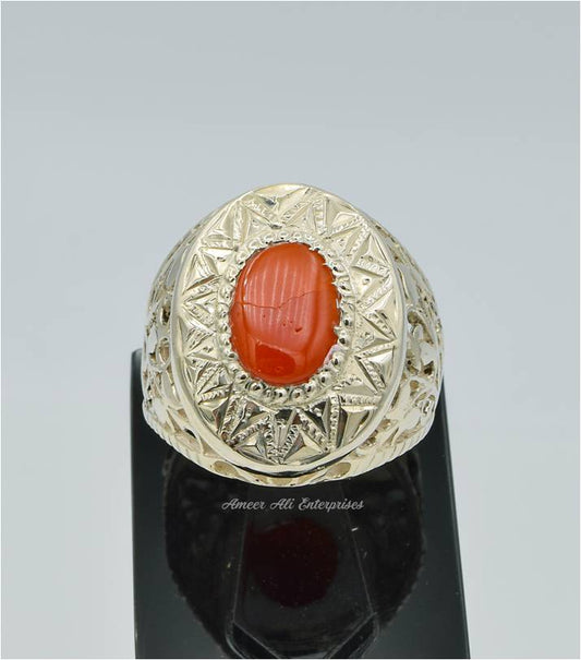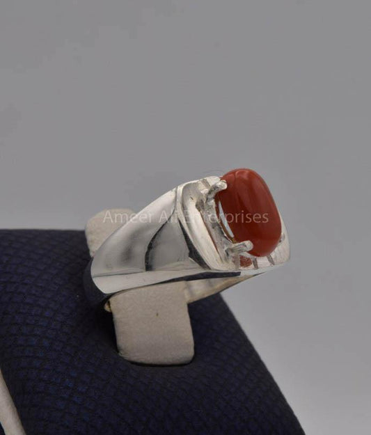 AAE 7712 Chandi Ring 925, Stone: Marjan (Coral)