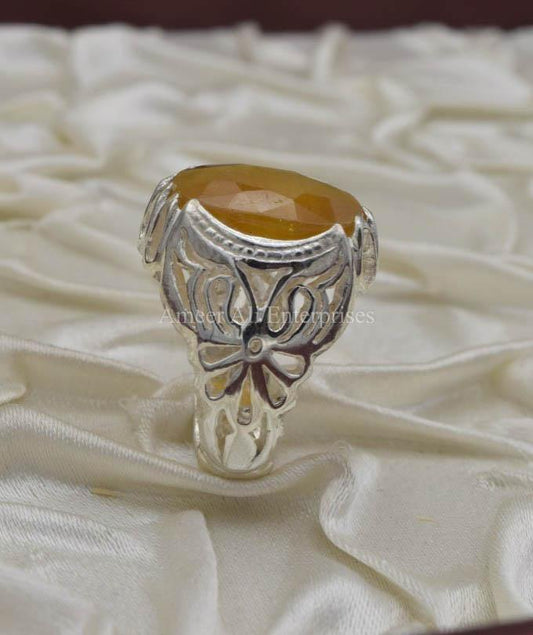 AAE 1569 Chandi Ring 925, Stone: Yellow Sapphire (Pukhraj)
