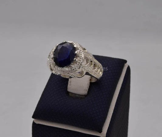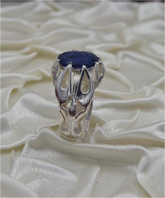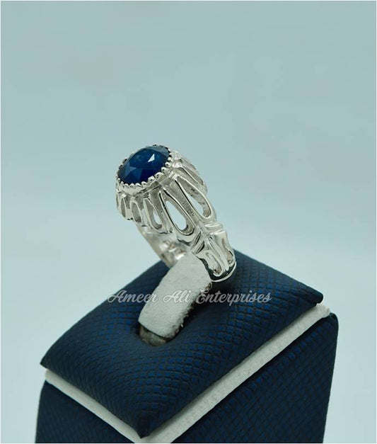 AAE 7717 Chandi Ring 925, Stone: Blue Sapphire (Neelam)