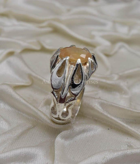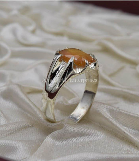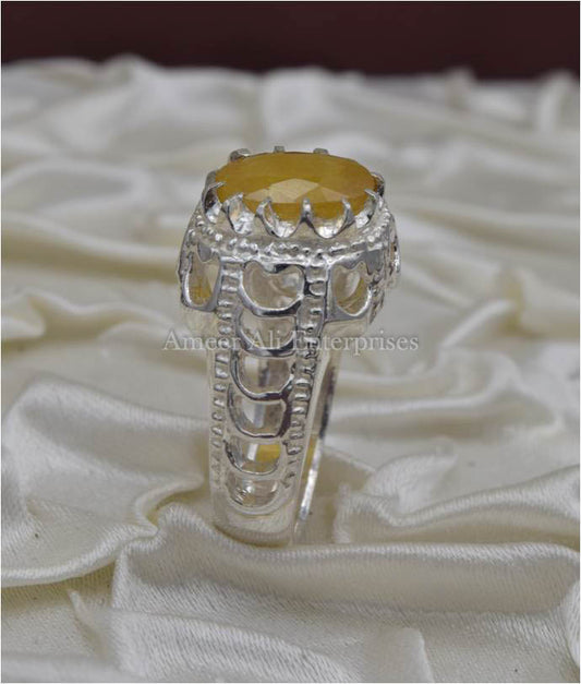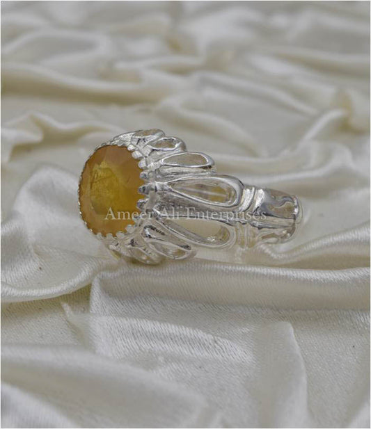 AAE 1855 Chandi Ring 925, Stone: Yellow Sapphire (Pukhraj)