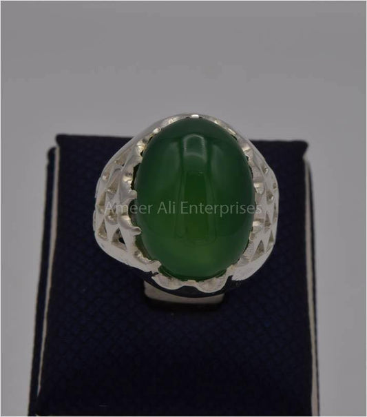 AAE 3122 Chandi Ring 925, Stone: Green Aqeeq