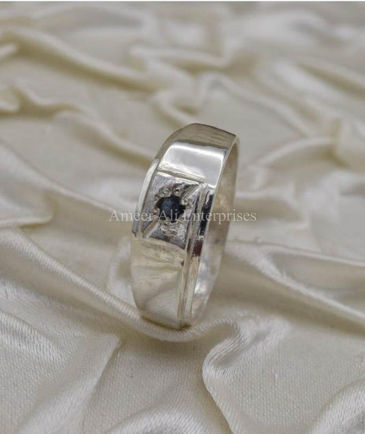 AAE 1433 Chandi Ring 925, Stone: Blue Sapphire (Neelam)