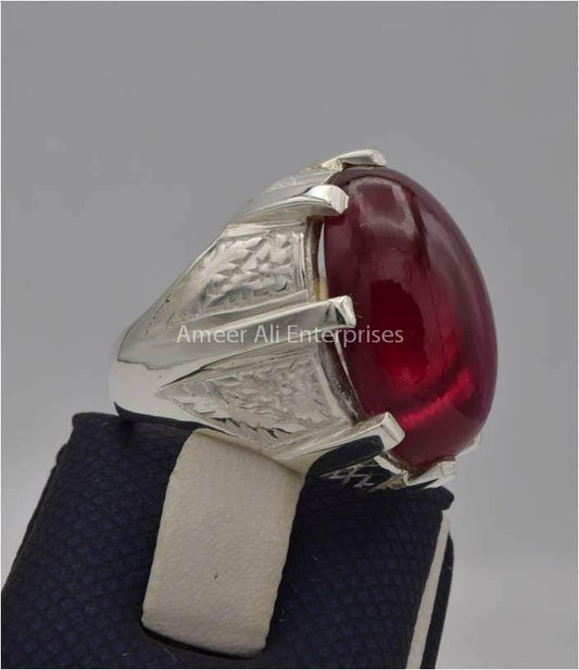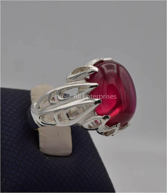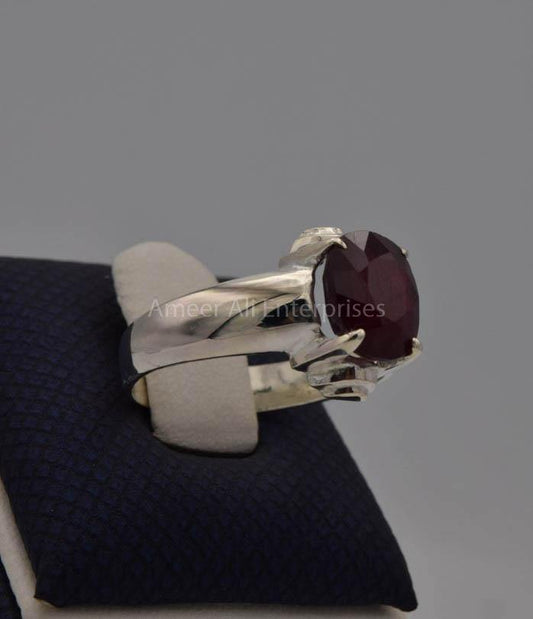 AAE 7772 Chandi Ring 925, Stone: African Yaqoot Ruby