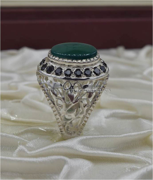 AAE 3121 Chandi Ring 925, Stone: Green Aqeeq
