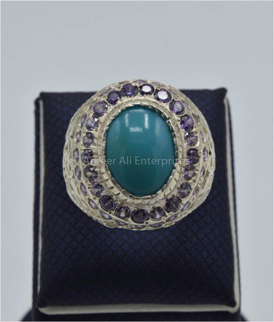 AAE 2213 Chandi Ring 925, Stone: Irani Poota Yaqoot (Anari Yaqoot)
