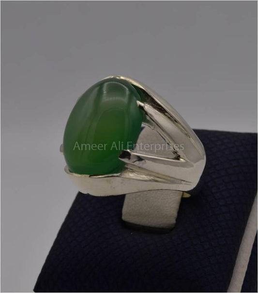 AAE 3118 Chandi Ring 925, Stone: Green Aqeeq