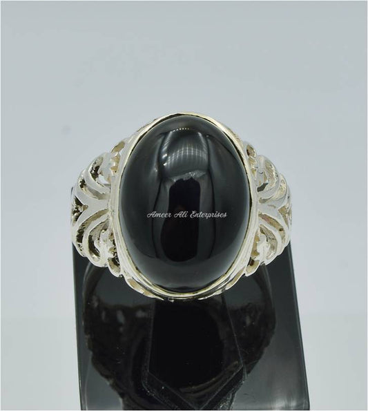 AAE 7805 Chandi Ring 925, Stone: Black Aqeeq