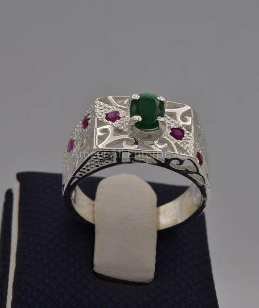 AAE 9811 Chandi Ring 925, Stone Emerald (Zamurd)