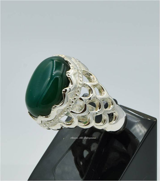 AAE 3117 Chandi Ring 925, Stone: Green Aqeeq