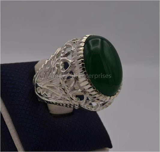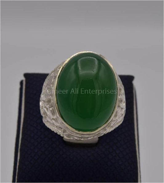AAE 6237 Chandi Ring 925, Stone: Green Aqeeq