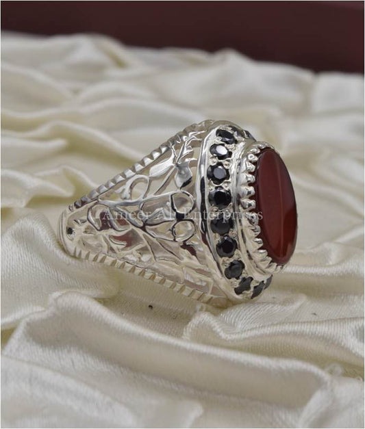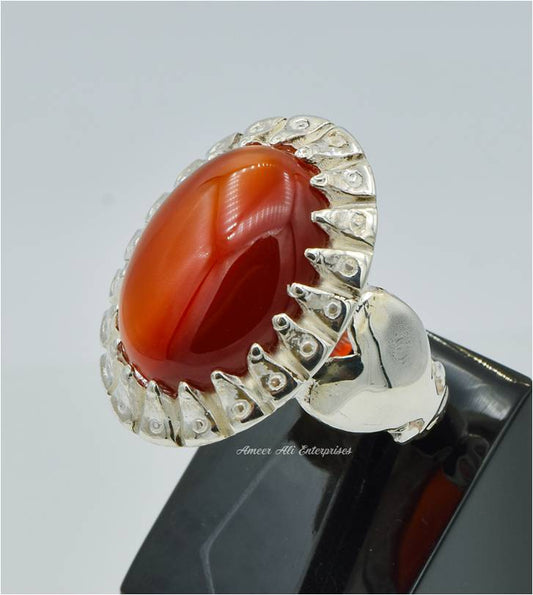 AAE 6691 Chandi Ring 925, Stone: Red Aqeeq