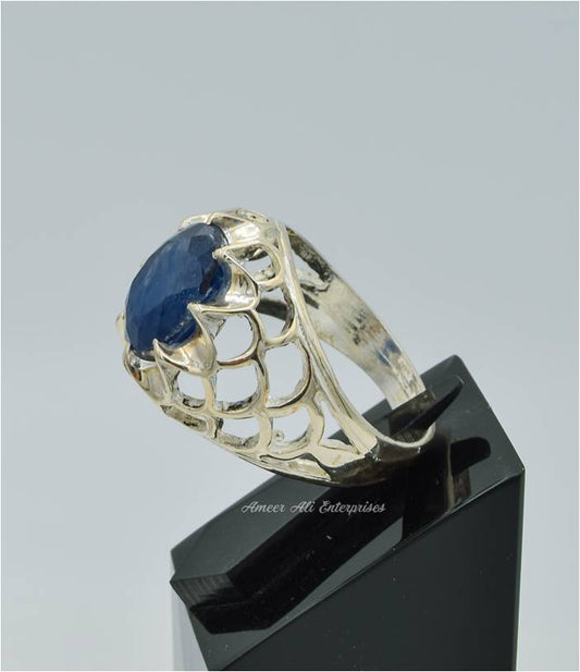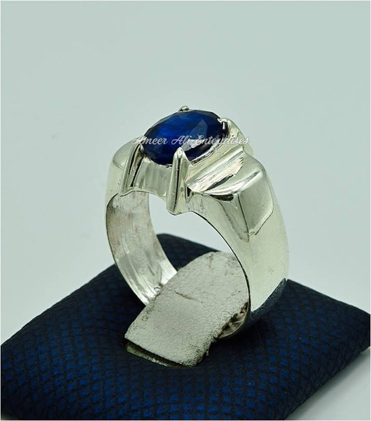 AAE 9812 Chandi Ring 925, Stone: Blue Sapphire (Neelam)