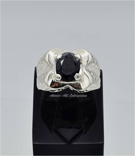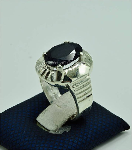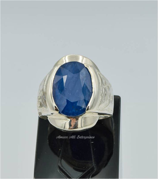 AAE 7717 Chandi Ring 925, Stone: Blue Sapphire (Neelam)