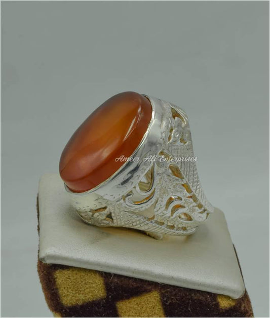 AAE 6819 Chandi Ring 925, Stone: Red Aqeeq
