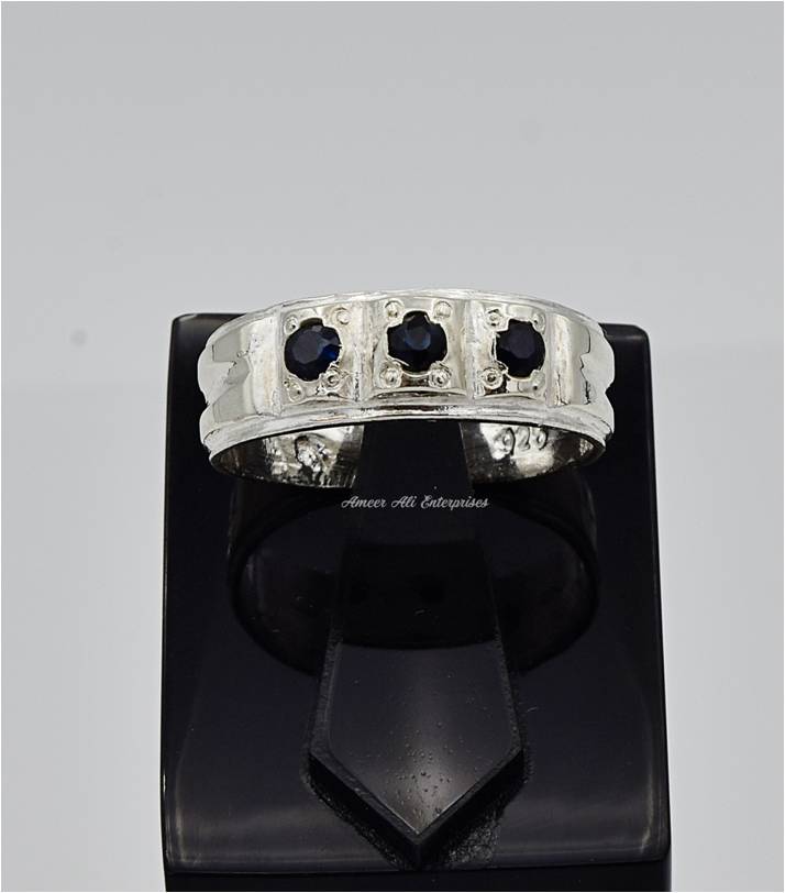 AAE 6576 Chandi Ring 925, Stone: Blue Sapphire (Neelam)