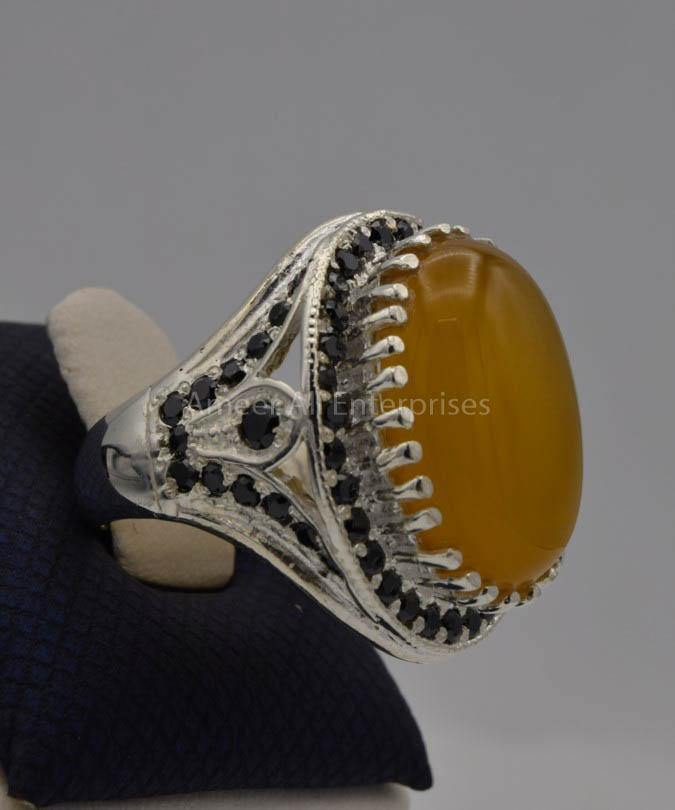 AAE 6534 Chandi Ring, Stone: Zard Aqeeq