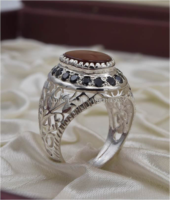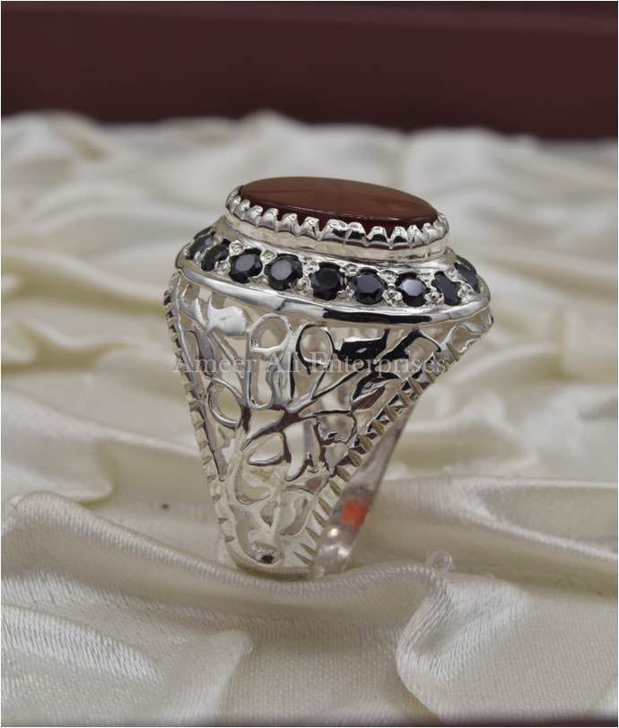 AAE 6691 Chandi Ring 925, Stone: Red Aqeeq