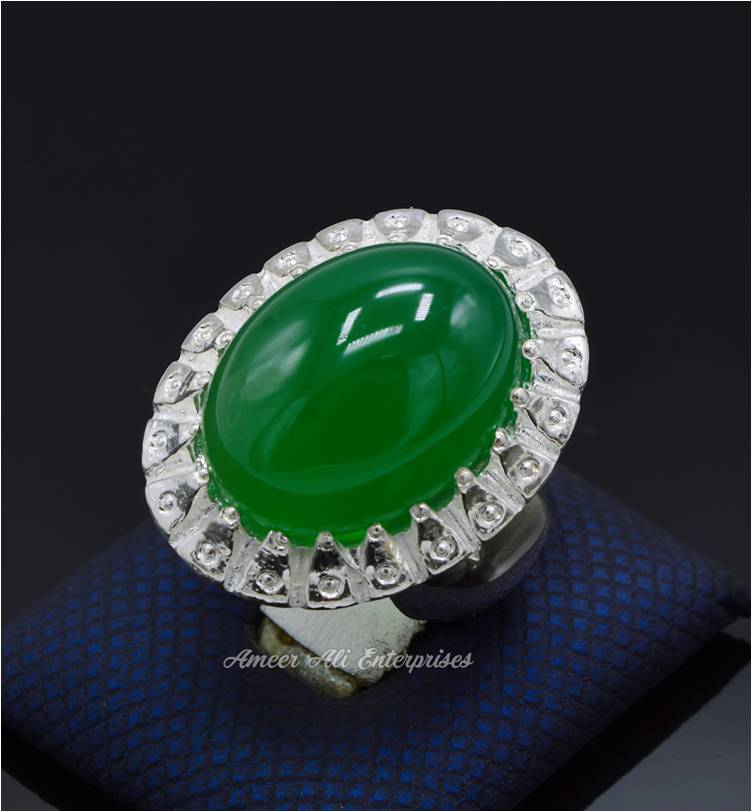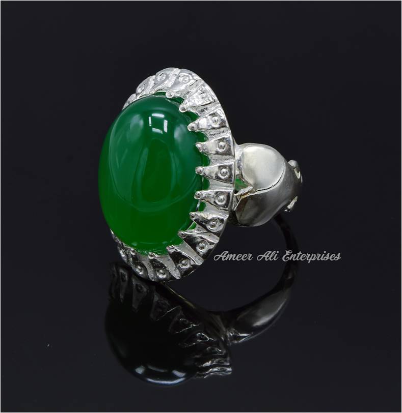 AAE 6816 CHANDI RING 925, STONE: Green Aqeeq
